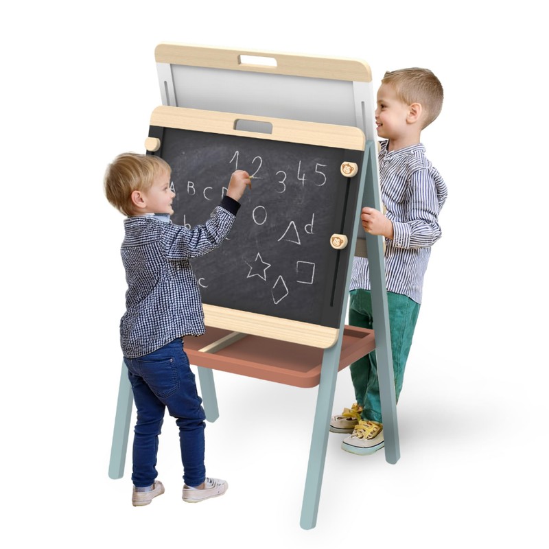 Dual-Sided Drawing & Writing Surface: The easel offers a blackboard for classic chalk art and a magnetic whiteboard for dry-erase markers and magnet play, encouraging kids to explore creativity in multiple ways.