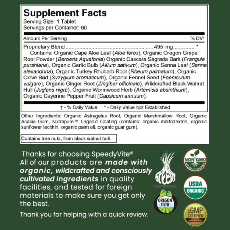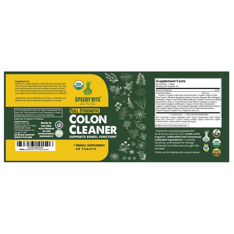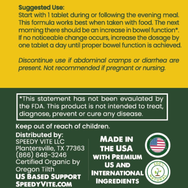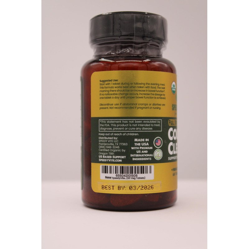 SpeedyVite® Organic Colon Cleaner Full Strength - (60 Veg Tablets) with Organic Cascara Sagrada bark, Oregon Grape Root, Turkey Rhubarb, Ginger & Fennel. Natural Supplement - Supports Bowel Function*