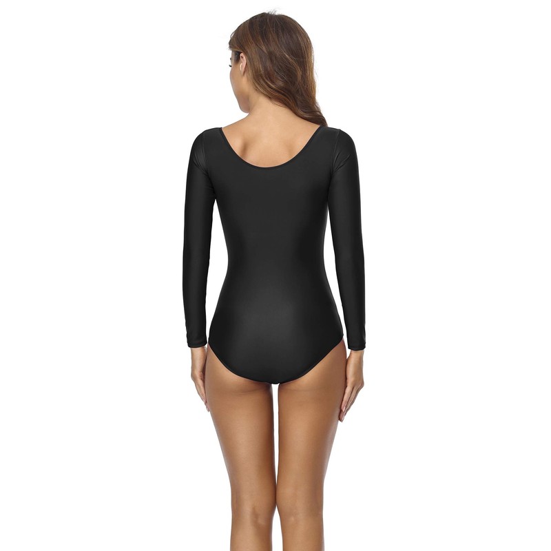 - Long sleeve leotard, scoop neckline, ballet leg line