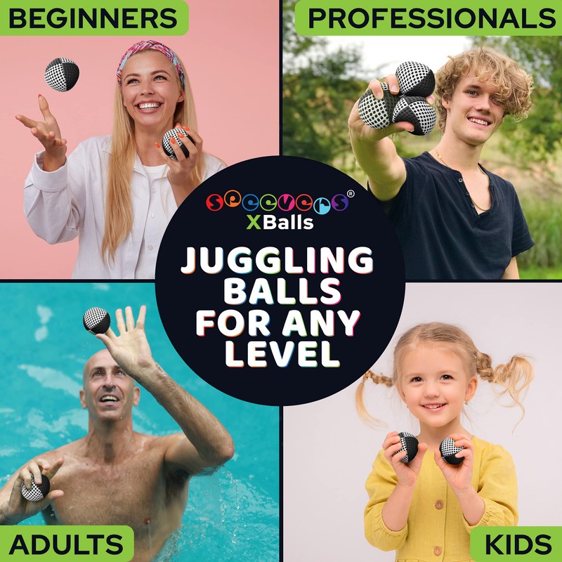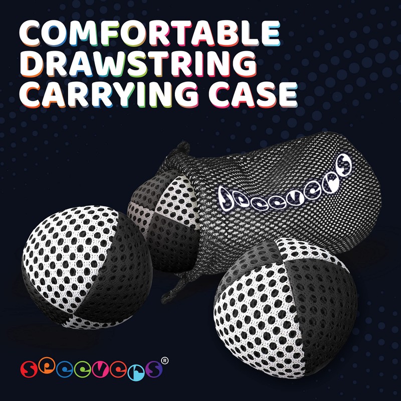 speevers Juggling Balls for Beginners and Professionals Set of 3, 14 Colors Available, 2 Layers of Net and Carry Case, Xballs Juggling Balls (Black - White, 3.2 oz)