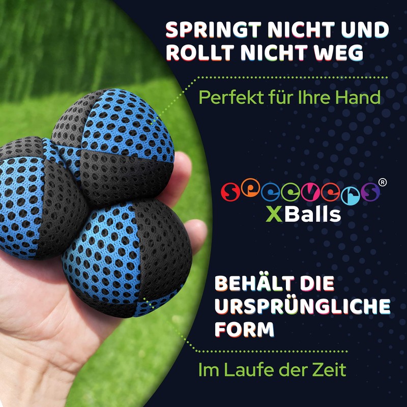 speevers XBalls High Quality Juggling Balls for Children, Beginners and Professionals, Set of 3, Juggling in 15 Colours, Juggling Set for Adults, Beginners Beanbags with Carry Bag (Black/Blue, 650 g)