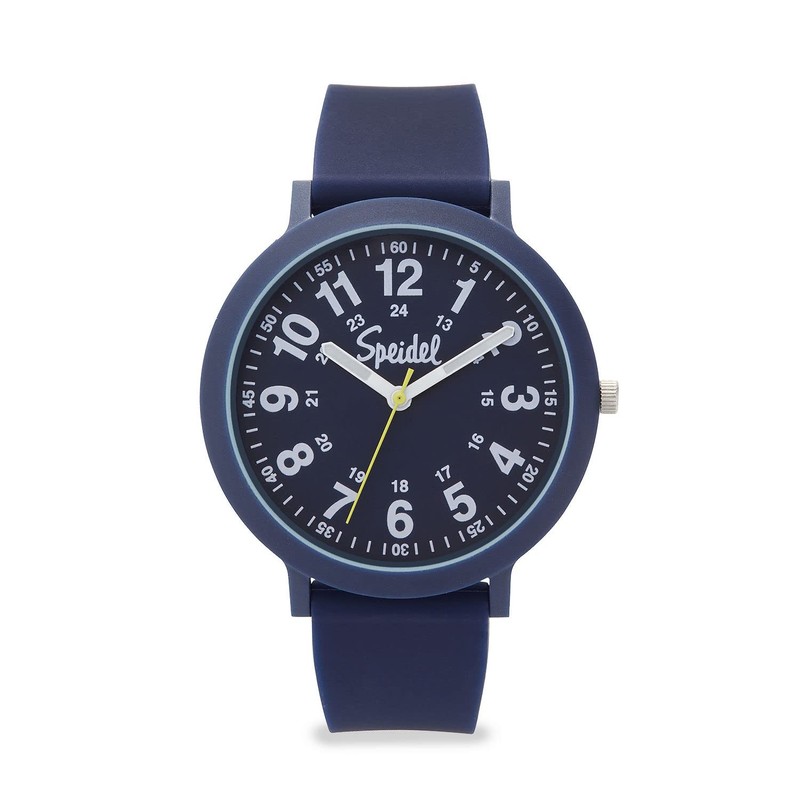 - An Original Speidel Watch: This eco-friendly watch is crafted out of recyclable plastic and silicone. It is easy to read, contains our reliable 3-hand Japanese quartz movement, and features a colored dial with 12- and 24-hour markers, luminous hour and minute hands, and a highly visible black second hand.