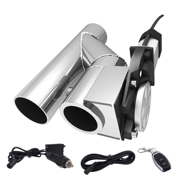 - One-Touch Loudness: 3.0 Inch Electric Exhaust Cutout Valve Kit fit for all types of vehicles. Note: please make sure you have enough space to install before purchase and make sure your exhaust size is 3.0 inch. Professional Installation is highly recommended. 3.0” Cut-out valve Kit included: 1 x 3.0” exhaust pipe cutout valve with motor, 1 x extension harness (Length: 3.5M), 1 x wireless remote control (without battery), and 1 x control box with cigarette lighter plug.