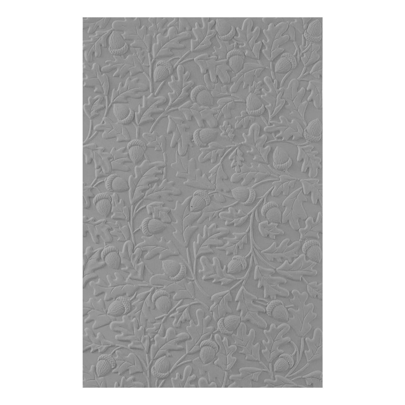 • Oak Forest 3D Embossing Folder is a 5.50 x 8.50-inch embossing folder filled with detailed oak leaves and stemmed acorns.
