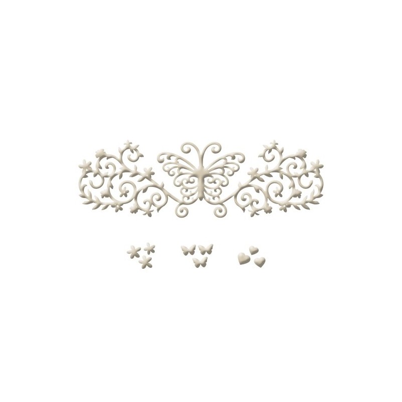 - Approximate sizes): hearts: ranges .25 to .625 in (3) flowers: ranges .25 to .625 in (3) butterflies: ranges .25 to .625 in (3) Strip: 6 x 1.875 in