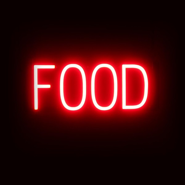 SpellBrite FOOD Sign | Restaurant-Related Red LED Sign with Neon Look | 16.9" x 6.3"