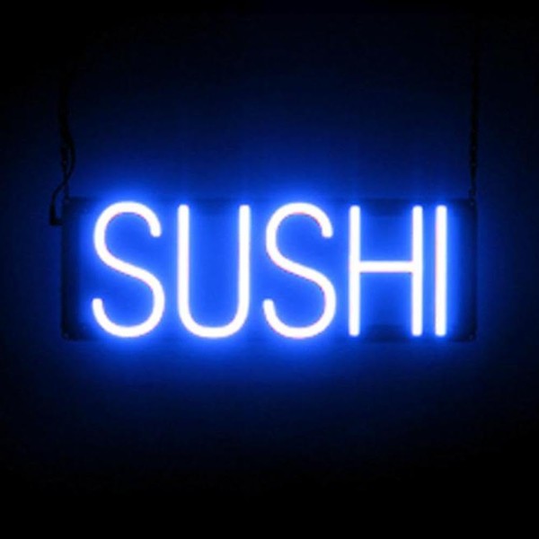 SpellBrite SUSHI Sign for Restaurants | Neon-Like Blue LED Restaurant Signage for Businesses | 18.0" x 6.3"