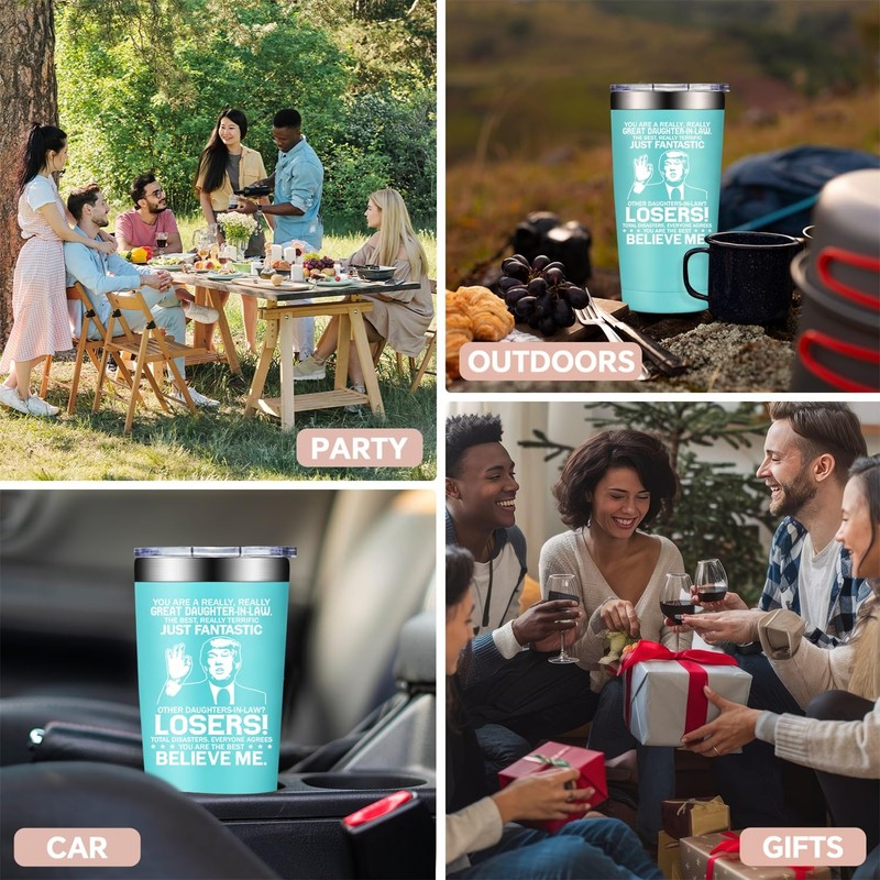 - Funny Gifts For Daughter in Law: This funny travel tumbler is a great birthday & Christmas or thanksgiving gift idea for your daughter in Law