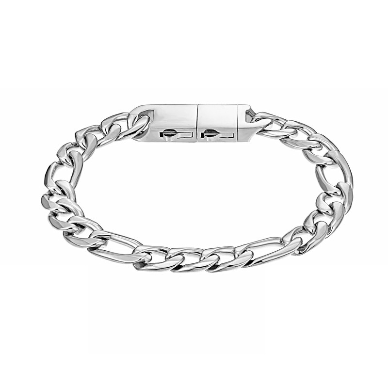 Speroto Men's Bracelet for Men Stainless Steel Bracelet Figaro Chain Hip Hop Bracelet Link Bracelet Gift for Men Women (silver,9mm,8.5inch)