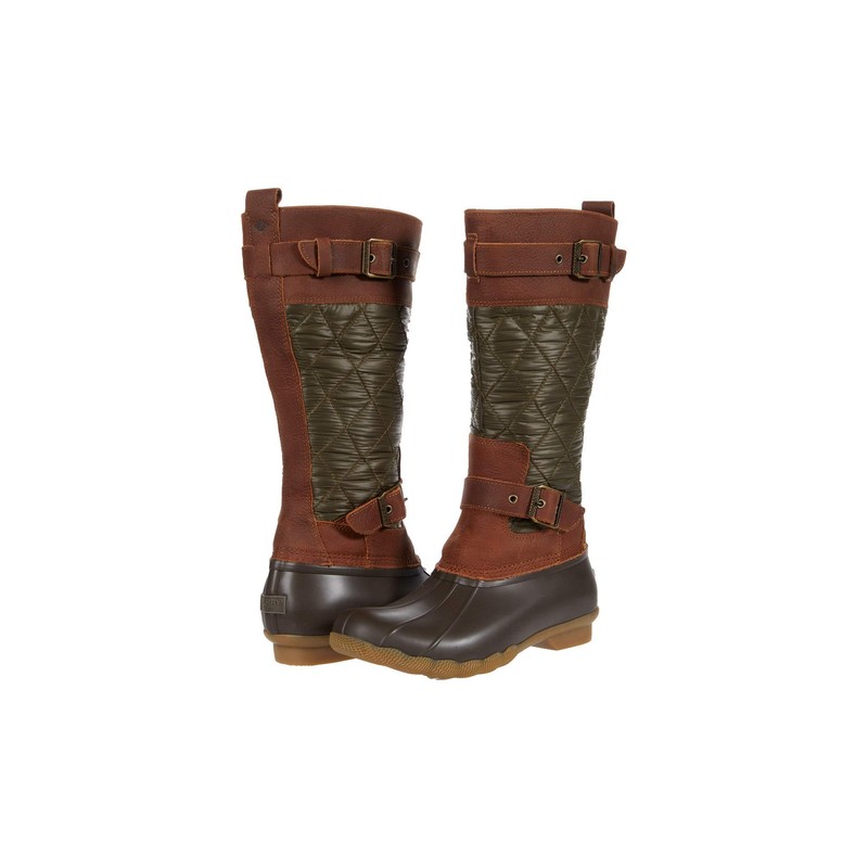 Sperry Women's Saltwater Tall Buckle Rain Boot, Olive/Brown, 5