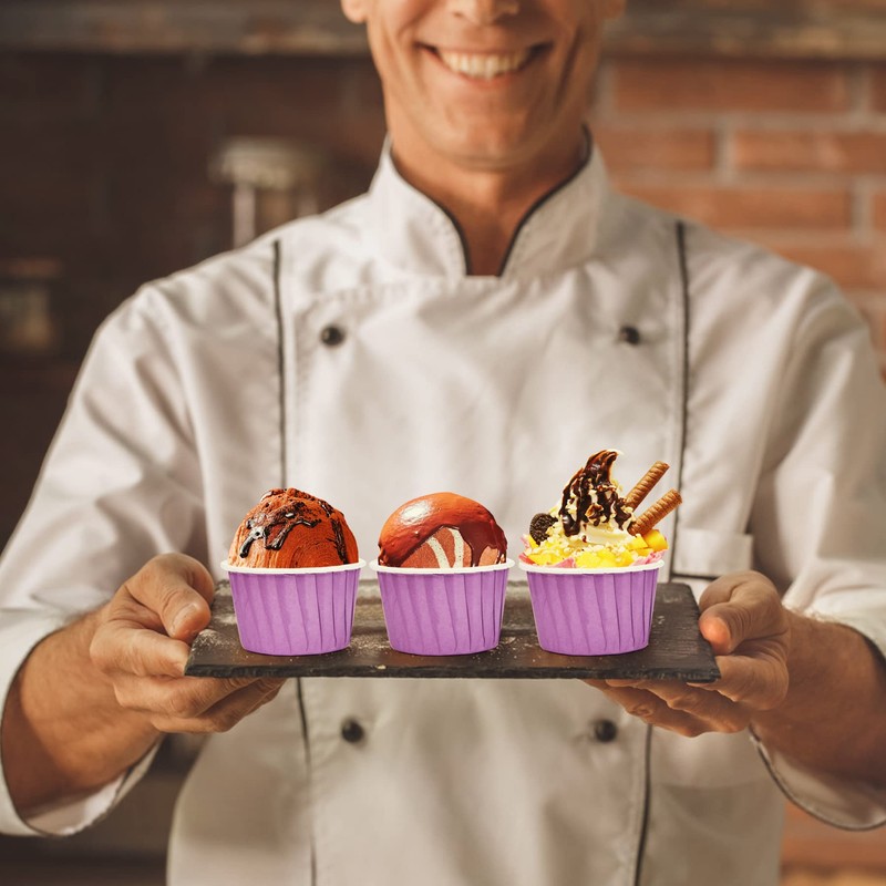 - Practical Design: The muffin paper liners are non-stick, you can easily tear off the paper cups while enjoying cakes, muffins, puffs, rolls and other desserts. With disposable design, you don't need to spend time cleaning.