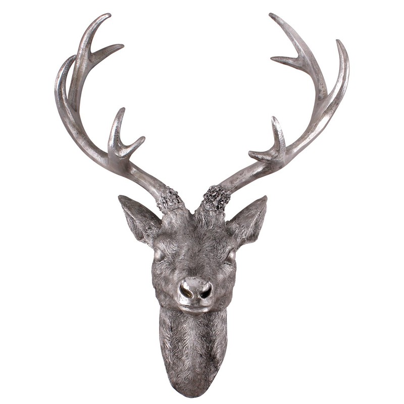 Decorative deer head as 10 ends in silver approx. 30 cm