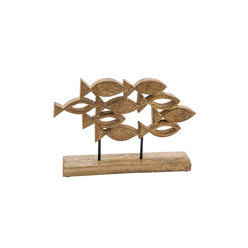 Spetebo Mango Stand Fish Shoal - 25 x 19 cm - Maritime Decorative Stand with Fish Motif - Wooden Figure Sculpture for Table and Window