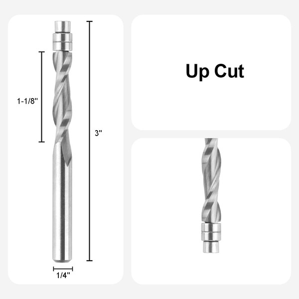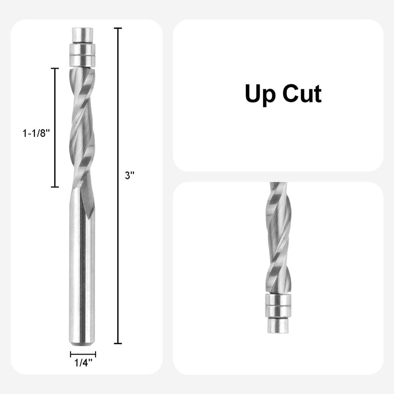 - Compatibility: Ideal for use with softwoods, hardwoods, plywood, laminate, MDF, and oak. Works with handheld and table-mounted routers with a 1/4" collet.