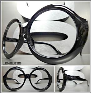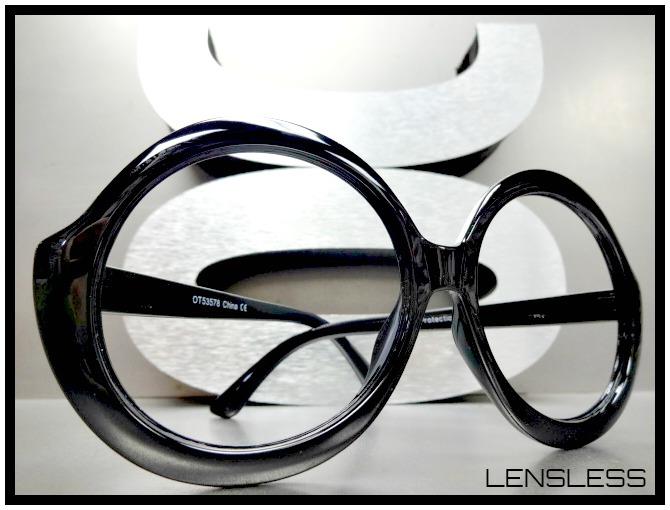 SPEXX Eyewear Womens Oversized Retro Style Round Black Lensless Eye Glasses Frame Only NO Lens