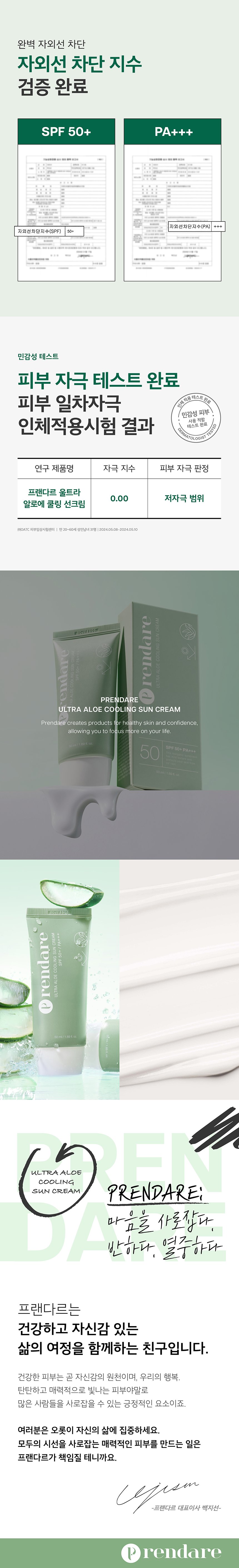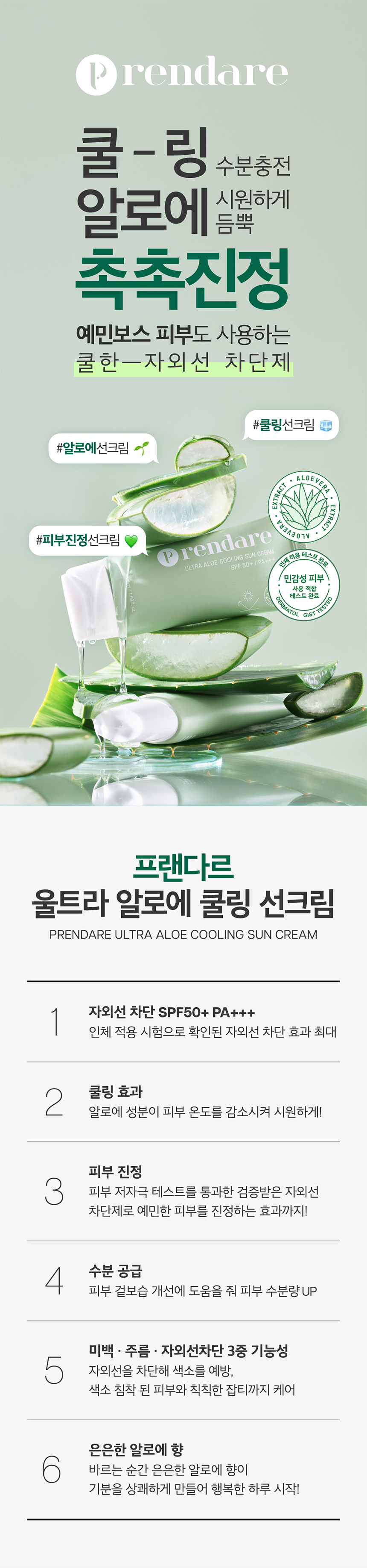 (프랜다르) 울트라 알로에 쿨링 선크림 SPF50+/PA+++ (Prandar) Ultra Aloe Cooling Sunscreen SPF50+/PA+++
