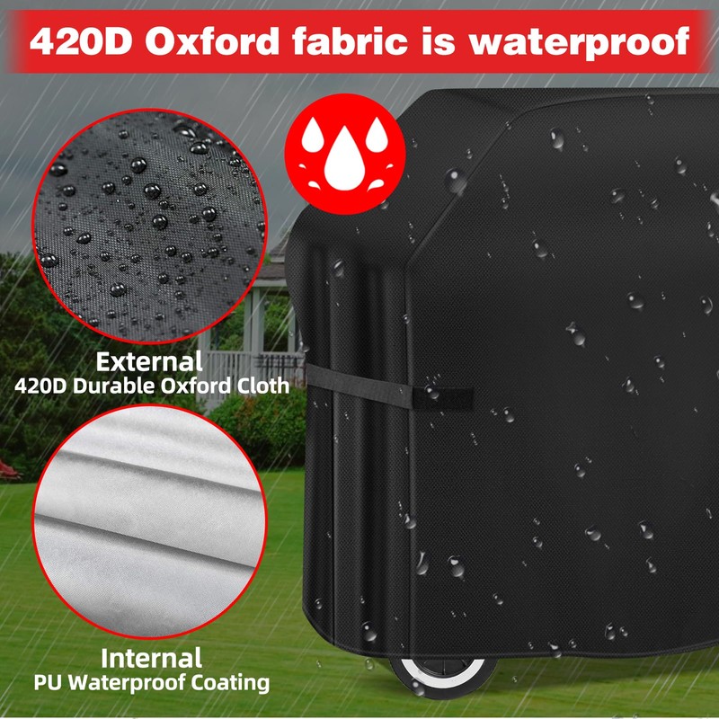 - Double protection material: our grill cover is made of 420D Oxford outer fabric and a waterproof PU inner coating for double protection and is coated on both sides, has good colour fastness, does not fade, does not tear and is not easy to deform your grill for years to prevent oxidation and rust and keep your grill clean.