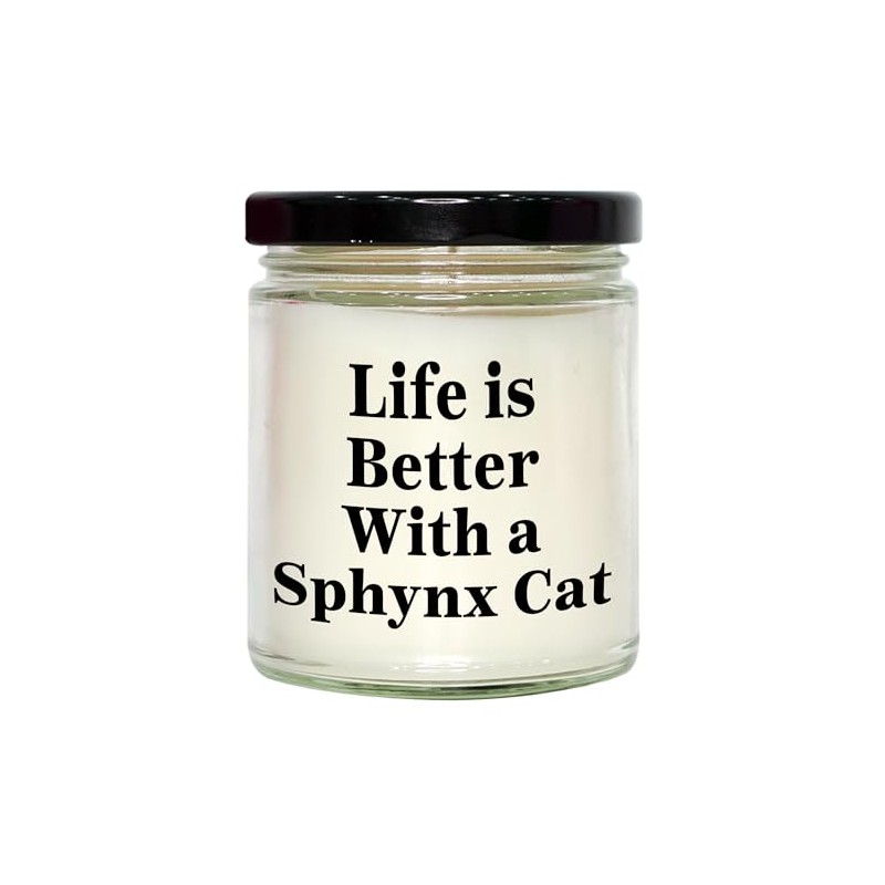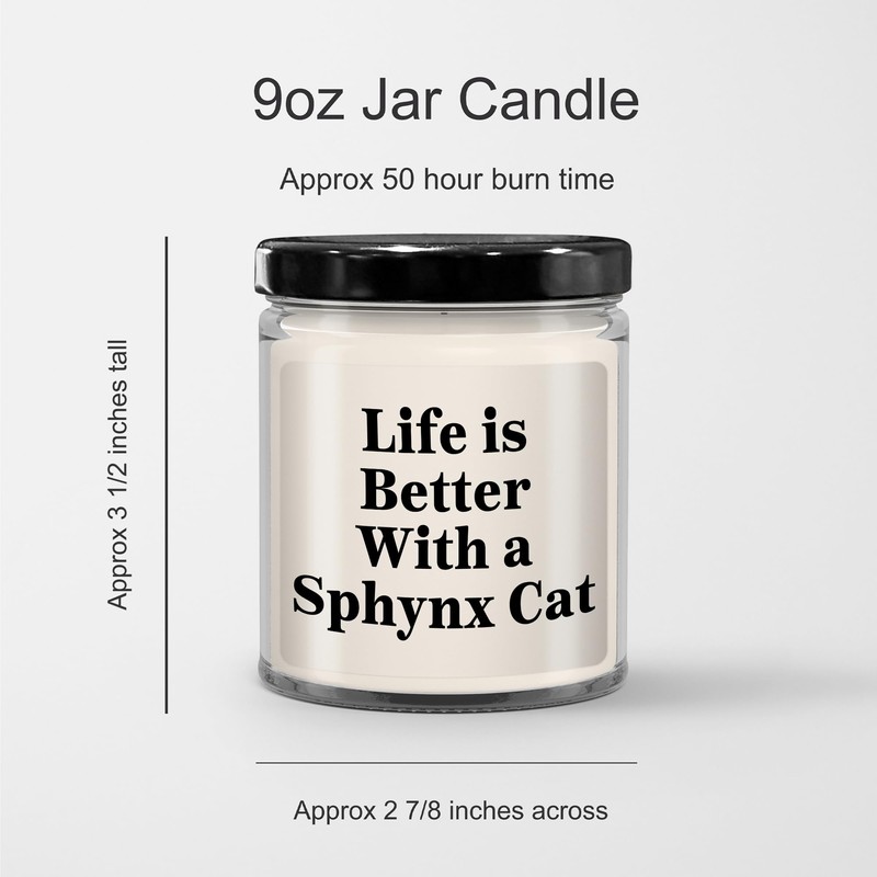 - Surprise your Sphynx Cat lover with this delightful 9oz Vanilla Soy Candle featuring the heartwarming quote "Life Is Better With A Sphynx Cat". This thoughtful gift will brighten their day and create a cozy ambiance in their home.