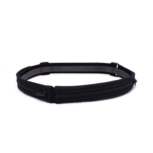 SPI Glide Buckle-Less, Adjustable Twin Pocket Running Belt (Black)