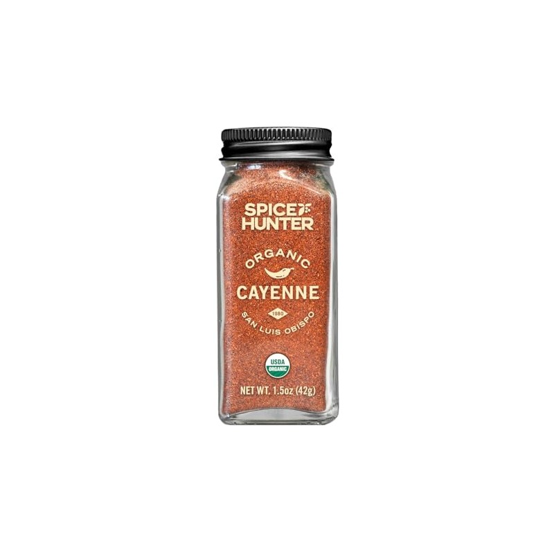 **What is The Spice Hunter Organic Red Pepper like?** The Spice Hunter Organic Red Pepper is intensely hot with a sharp, pronounced flavor. **How many ounces is The Spice Hunter Organic Red Pepper?** The Spice Hunter Organic Red Pepper is 1.5 ounces. **How is The Spice Hunter Organic Red Pepper packaged?** The Spice Hunter Organic Red Pepper is packaged in a glass jar with a plastic screw-top cap. Beneath the cap, a removable shaker top with holes allows for small shakes of product. Remove the top to scoop larger amounts of the blend or pour freely. All of The Spice Hunter products are vacuum-sealed for consumer safety and to preserve freshness. **How long will The Spice Hunter Organic Red Pepper last after opening?** The Spice Hunter Organic Red Pepper will retain optimal flavor for 24 months, after which time the product will remain safe to use but may lose its potency. **How should I store The Spice Hunter Organic Red Pepper?** Store The Spice Hunter Organic Red Pepper in a cool, dark, and dry place to prevent discoloration, clumping, and loss of flavor. **What are some recipe usage suggestions for The Spice Hunter Organic Red Pepper?** Add a dash to liven up everything from eggs and potatoes to chicken and popcorn. Use in soups, entrées, and appetizers to dial up the spice and flavor. **How is ground red pepper typically used?** Ground red pepper is an essential ingredient in Mexican, Indian, and Cajun cuisine. It's used to add sweet, fiery heat to soups, curries, and braises. Often used in spice blends, cayenne pepper pairs well with other spices to enhance savory flavors without overpowering them. **Where is The Spice Hunter Organic Red Pepper from?** The Spice Hunter Organic Red Pepper is sourced from optimal growing regions around the world and undergoes strict scrutiny to ensure it meets The Spice Hunter's high standards of quality. **Is The Spice Hunter Organic Red Pepper organic?** Yes, The Spice Hunter Organic Red Pepper is Certified USDA Organic. **Is The Spice Hunter Organic Red Pepper Non-GMO Project Verified?** Yes, The Spice Hunter Organic Red Pepper is Non-GMO Project Verified. **Is The Spice Hunter Organic Red Pepper Certified Kosher?** Yes, The Spice Hunter Organic Red Pepper is Certified Kosher. **Is The Spice Hunter Organic Red Pepper nut-free?** Yes, The Spice Hunter Organic Red Pepper is produced in a nut-free facility and is safe for individuals with nut allergies to consume.