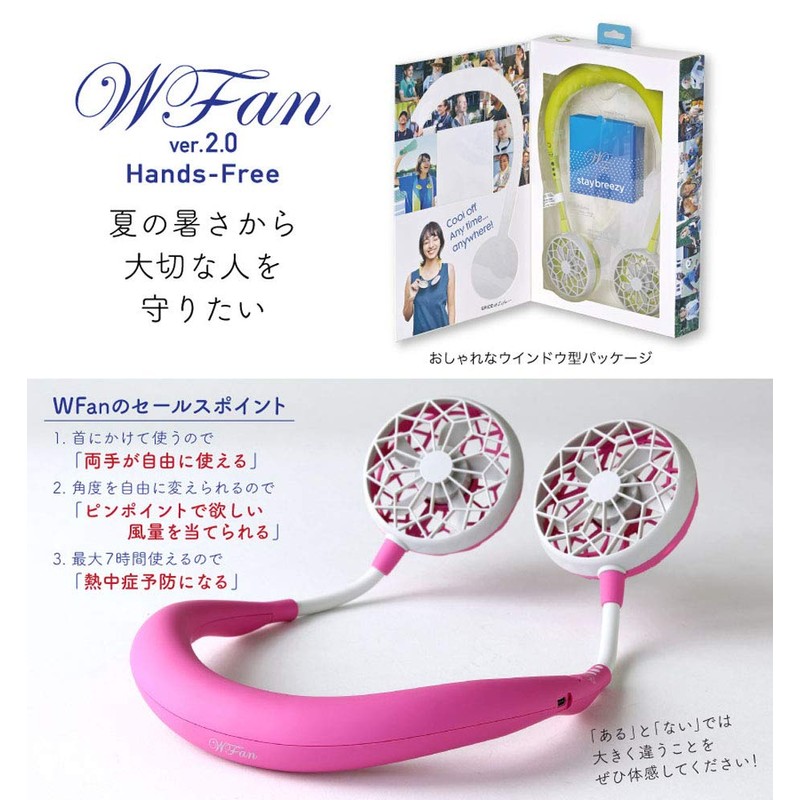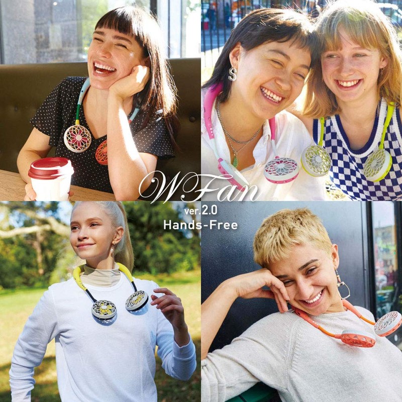 SPICE OF LIFE WFan Ver. 2.0 DF201RB Portable Dual Fan, Hands-Free Mask Fan, Anti-Heatstroke, Low-Noise, Safety Tested, 3 Settings, 7 Hours Continuous, Fits Neck, Nickel, 300 Charges, USB, Raspberry