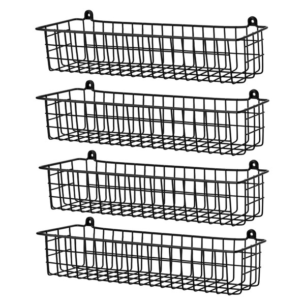 Spice Rack Organizer Wall Mount, 4 Pack Black Seasoning Rack Wire Storage Baskets for Wall or Cabinet Door in Kitchen and RV