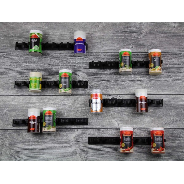 - ✅ Black black: the spice holder consists of 6 strips (6 black strips) with 5 clips each and can hold up to 30 spices. It is ideal as a spice rack system and spice rack cabinet door
