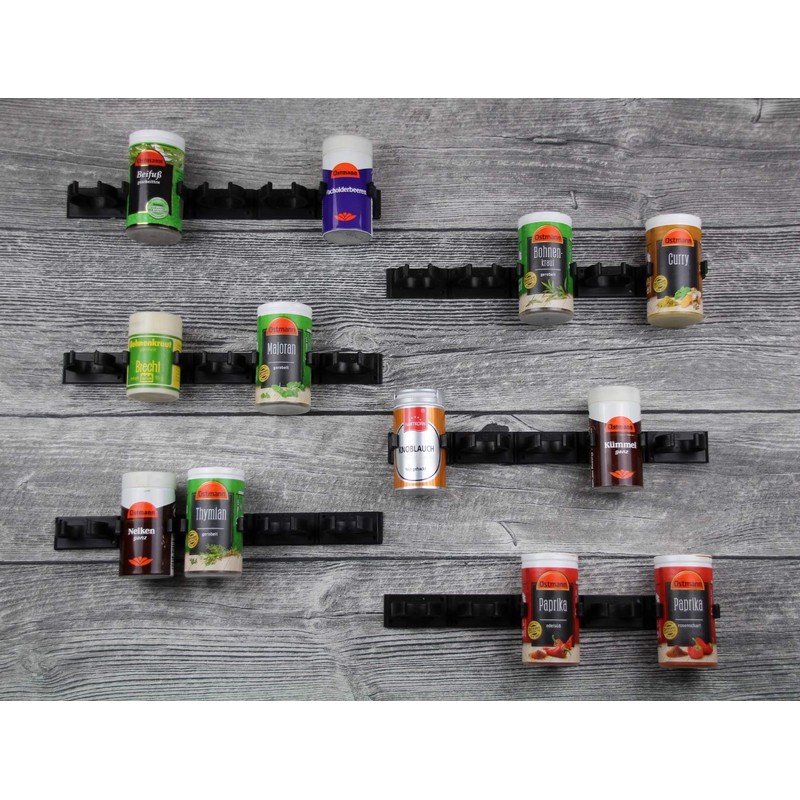 - Perfect fit: the adhesive spice rack fits most plastic spice jars with a diameter between 3 and 5 cm. The spice rack organiser is also ideal as an Ostmann spice rack