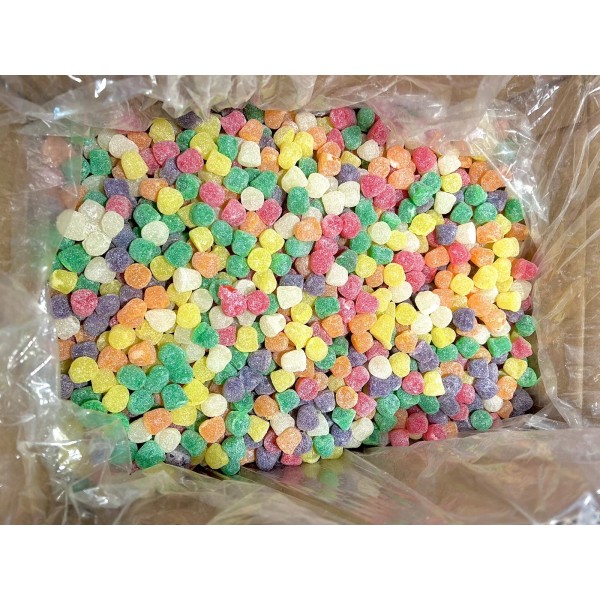 These spiced Jelly gum drops candy is sweet and a fan favorite for that old school taste. These orange Flavored treats are shaped like gum drops with a soft inside and crunchy sour sugar outside. It is mildly spicy and tangy and one of the more popular candies on the market.
