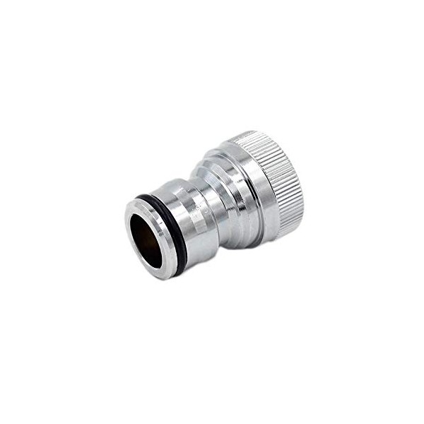 - Connection options: our connector can be mounted on a tap with a 3/4 inch external thread. On the connection side, you can then connect all hoses of the size 3/4 inch.