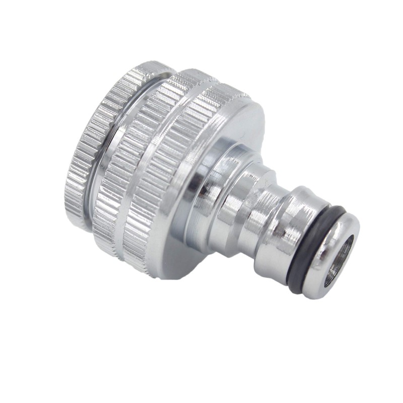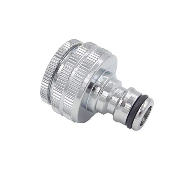 - Connection options: our connector can be mounted on a tap with a 1 inch external thread. On the connection side, you can then connect all hoses of the size 1/2 inch. !!! Extra: adapter piece to reduce to 3/4 inch!! !
