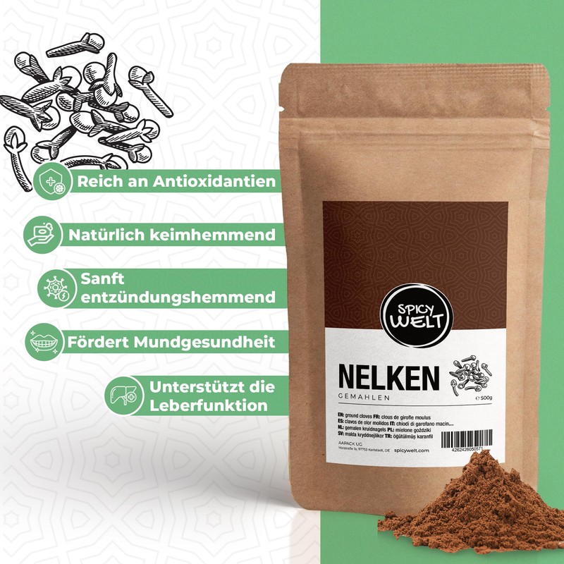 - 🌱 Intensiv & Rein: Pures Nelkenaroma ohne Zusätze, fein gemahlen.