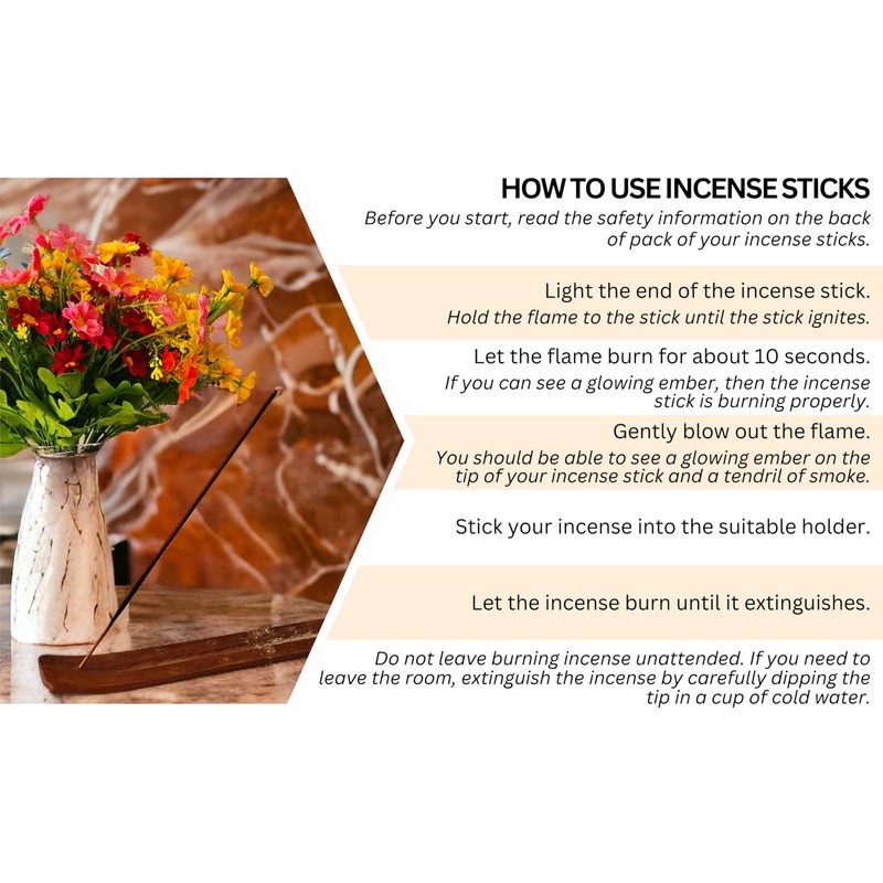 - LONG-LASTING INCENSE STICKS - Each stick burns for 80-100 minutes.
