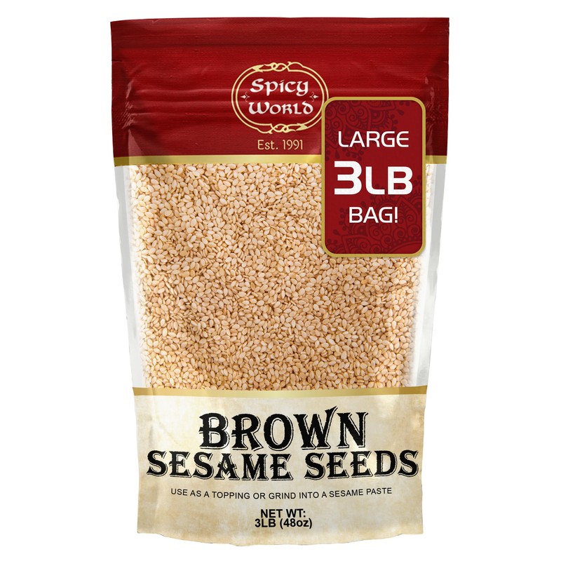 Spicy World Natural Brown Sesame Seeds 3 LB (48oz) - Non-GMO, Vegan, Raw, Unroasted, Unsalted, Plant-Based Protein, Source of Fiber & Iron, Ideal for Topping, Cooking & Baking