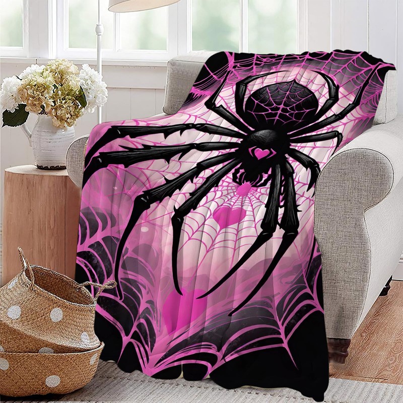 Spider Blanket Soft Fuzzy Fleece Pink Spider Spiderweb Throw Blanket Decor Cozy Warm Plush Flannel Cool Cobweb Blanket Gifts for Kids Adults Home Chair Sofa Couch Bed 50"X40"