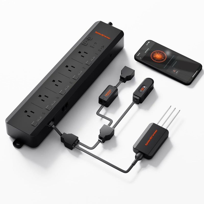 Spider Farmer GGS AC5 Power Strip Kits, 5 AC Smart APP-Based Controls Outlets, 3 in 1 Soil Sensor, Temp Humid Light Sensor, for Indoor Grow Tent and Room