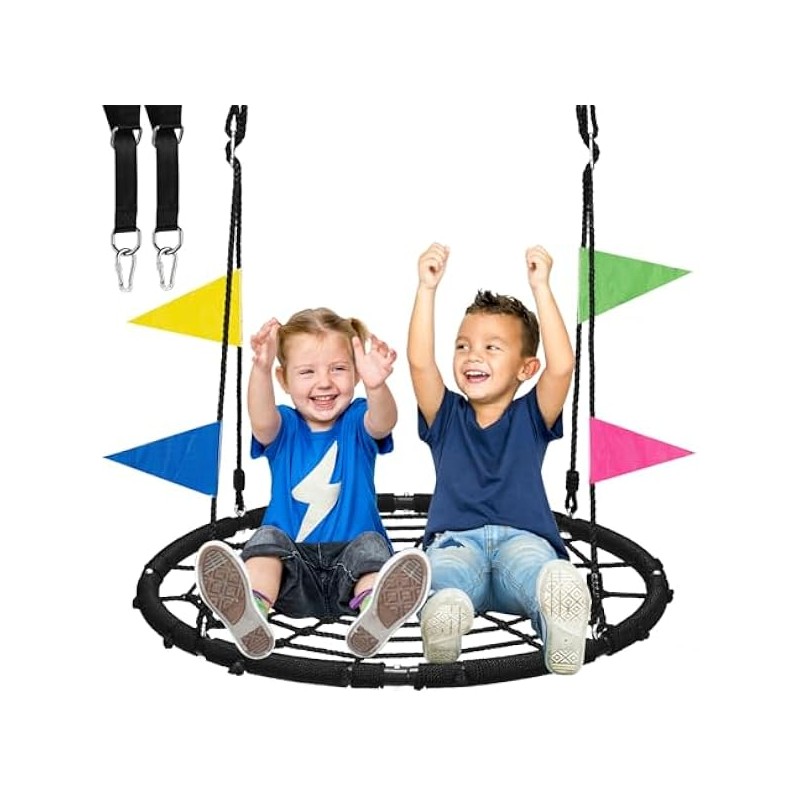 Spider Web Tree Swing, 40 inch Outdoor Saucer Net Swing, with Tree Hanging Straps, 800lbs Weight Capacity, for Backyard and Playground, Gifts for Kids, Black