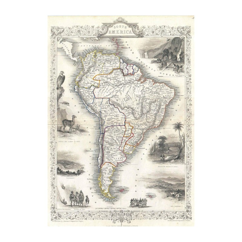 Spiffing Prints Tallis Map of South America 1850
