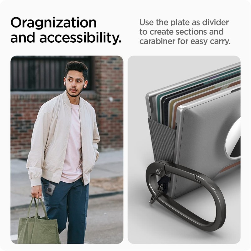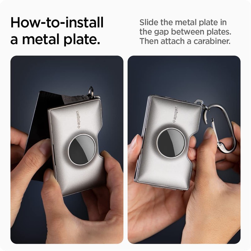 - Metal Plate with Key Ring and Carabiner included to insert inside the wallet and hang around anywhere.