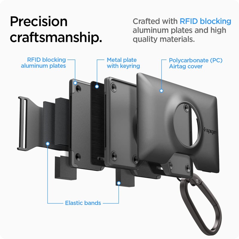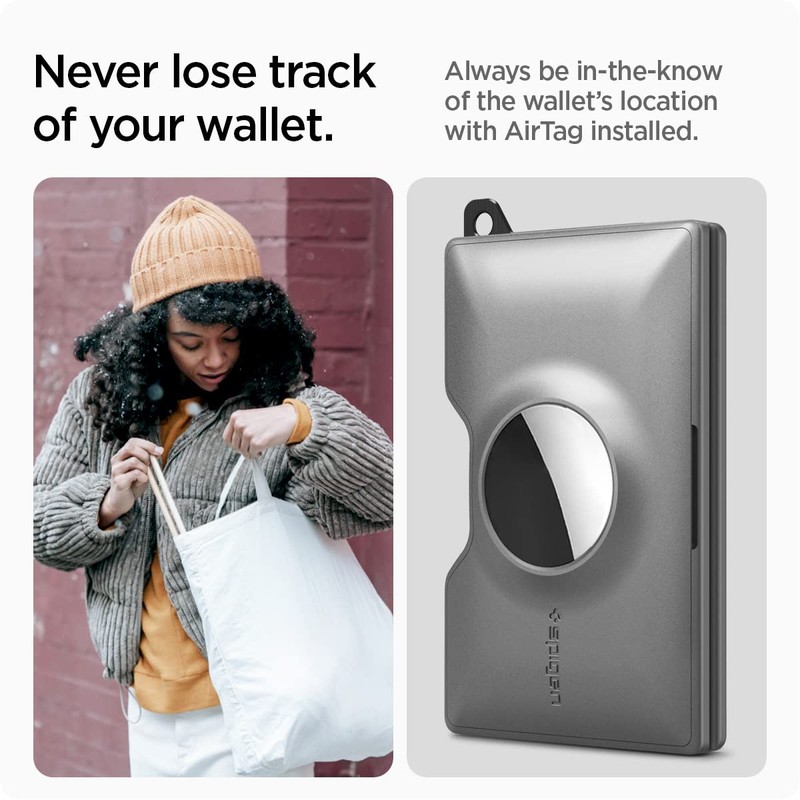 Spigen Wallet S RFID Signal Blocking AirTag Credit Card Holder with Keyring and Cash Strap - Gunmetal