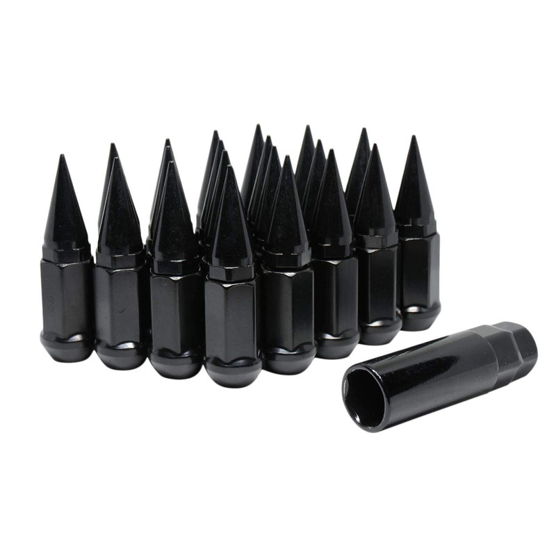 Spike Lug Nuts 20 Pc Installation Kit 1/2" Black for for Chevy C10 1/2 T Blazer (5 Lug) Jeep Wrangler (80-17) CJ Gr Cherokee (80-12)