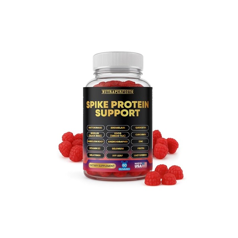 Spike Protein Detox Gummies - Nattokinase Bromelain Quercetin EGCG Curcumin Dandelion Root Andrographis Zinc Vitamin D3 Selenium Fisetin Proteolytic Enzyme for Fibrinolytic Foreign Protein Cleanse