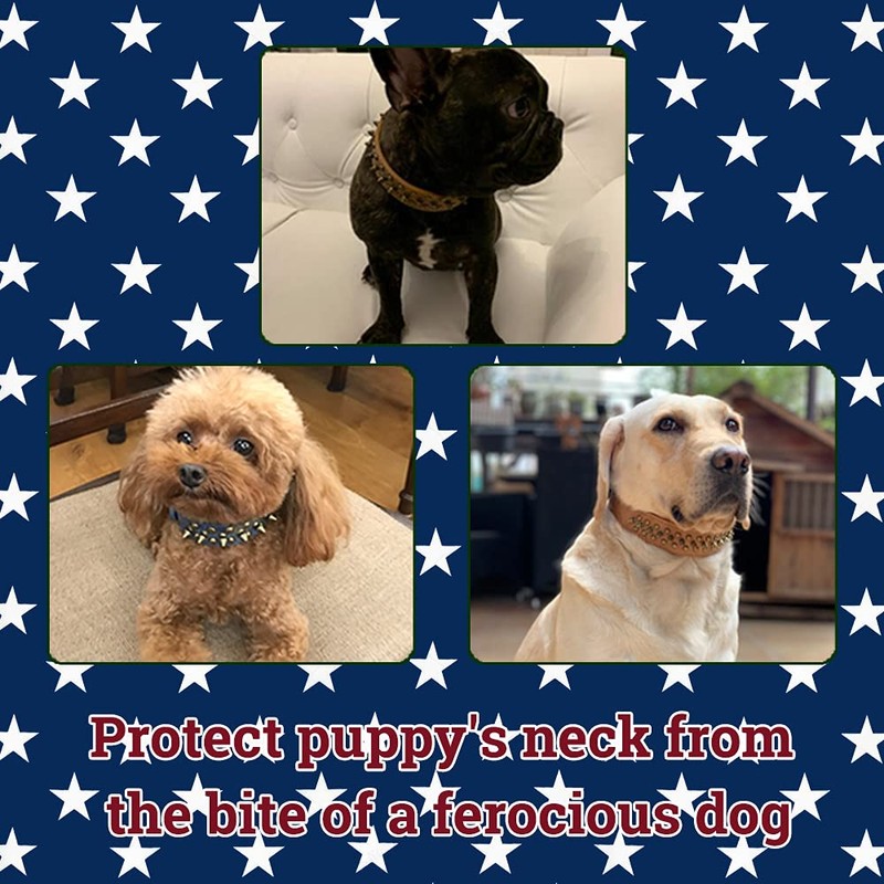 This dog collar has PU leather and retro metal buckles.Vintage rivet design makes the dog more handsome. Solid durable alloy hardware that is will not rust. Great for all weather conditions. Is this dog collar just decorative? No, it can resist the fierce dog attack, and the collar can play a defensive role when biting your dog's neck. Available in three colors and five sizes to choose from, there is always one for your dog. Make your dog look cute and feel comfortable. Our dog collars are durable. Each collar pays attention to every detail. As a dog-loving person, we must consider the comfort of your dog when designing this circle. It’s right to choose it. Quality assurance : If one of our collars ever fails due to materials or workmanship a replacement collar will be provided.