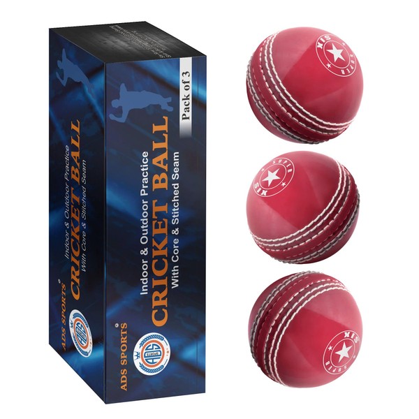 SPIN FIRST ADS Sports Soft Cricket Ball for Training & Coaching & Practice 3 Balls (Red)