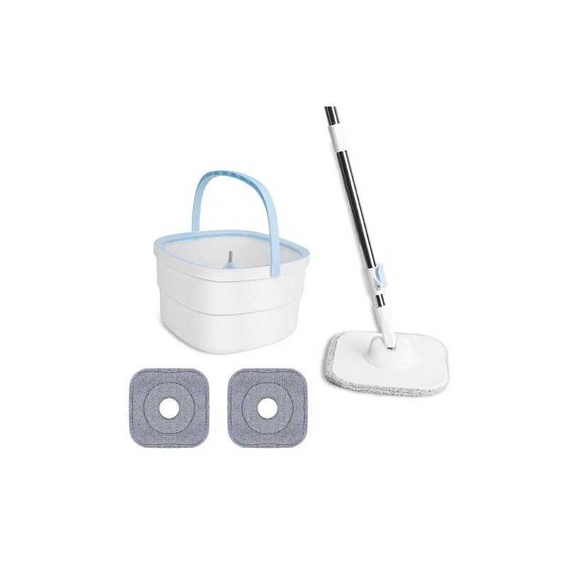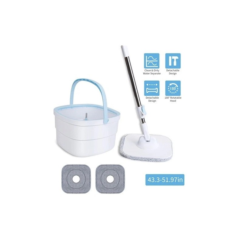 Do you want to clean your floor easily and quickly? Our mop and bucket set is a good helper for you! Equipped with special rotatable wringer attachment, just press the mop head on the center of the bucket to clean/dry the mop pad. With dual compartments, our system keeps clean and dirty water separate, ensuring that you clean the floor with clean water for thorough cleaning. 180° Rotatable mop head can easily move to the narrow space to remove the corner stains. And the drainage port on the bottom allows you to rinse dirt and debris conveniently. 2 Microfiber pads can clean both wet and dry floors, suitable for vinyl floors, wooden floor, also for cars, room windows and doors cleaning!