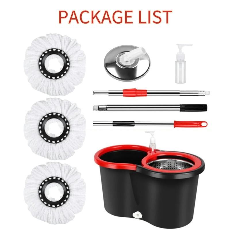 - Spin Mop Bucket with Wringer Set, Operable 360 ° Rotating Mop Bucket Set, with 3 Microfiber Replacement Head ,Stainless Steel Mop Bucket 61 Inch Adjustable Handle Household Cleaning Tools Black Plastic