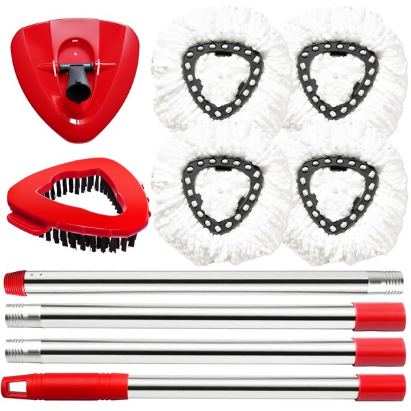 - 【Package Include】:Your package includes 4 mop replacement heads, 1 mop handle, 1 triangle mop base and 1 scrub mop brush, if you aren’t happy simply let us know and our professional customer service team are always glad to help