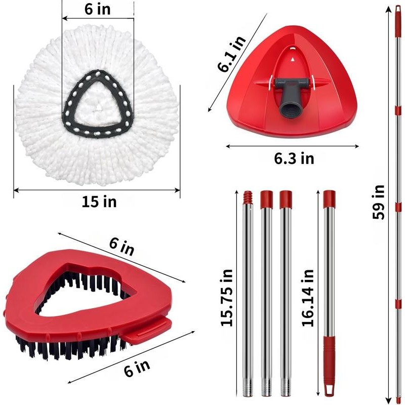 Spin Mop Head Replacement & Shower Floor Scrubber,for O Cedar Spin Mop 1-Tank System,Microfiber Mop Replace Head Easy Cleaning Floor Head Mop:_4 Red Cotton Head Mop Set Combination