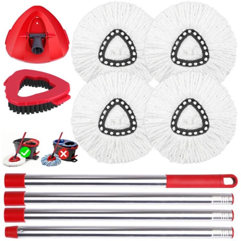 GREAT VALUE SET: You will get 4 mop replace head, 1 mop base ,1 scrub brush and 1 mop handle mop set. 4 PACK REFILLS PROVIDE 12 MONTHS OF CLEANING, Save time and money with longer-lasting mop head replacements.