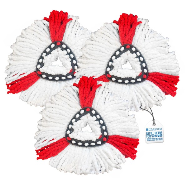 Spin Mop Heads - Compatible with Vileda Mop Head Replacement - Super Absorbent, Fast Drying Triangular Design Floor Pads for Multi-Surface Cleaning - Pack of 3